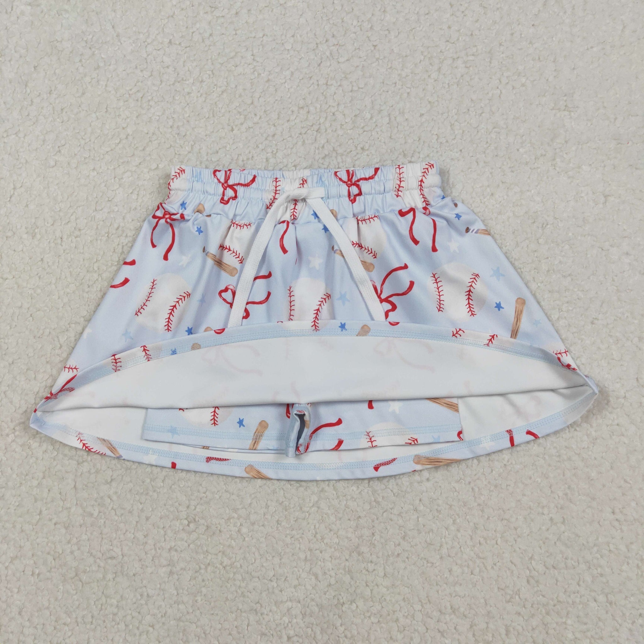 Baseball Bow Pattern Blue Athletic Shorts Girls Skirt