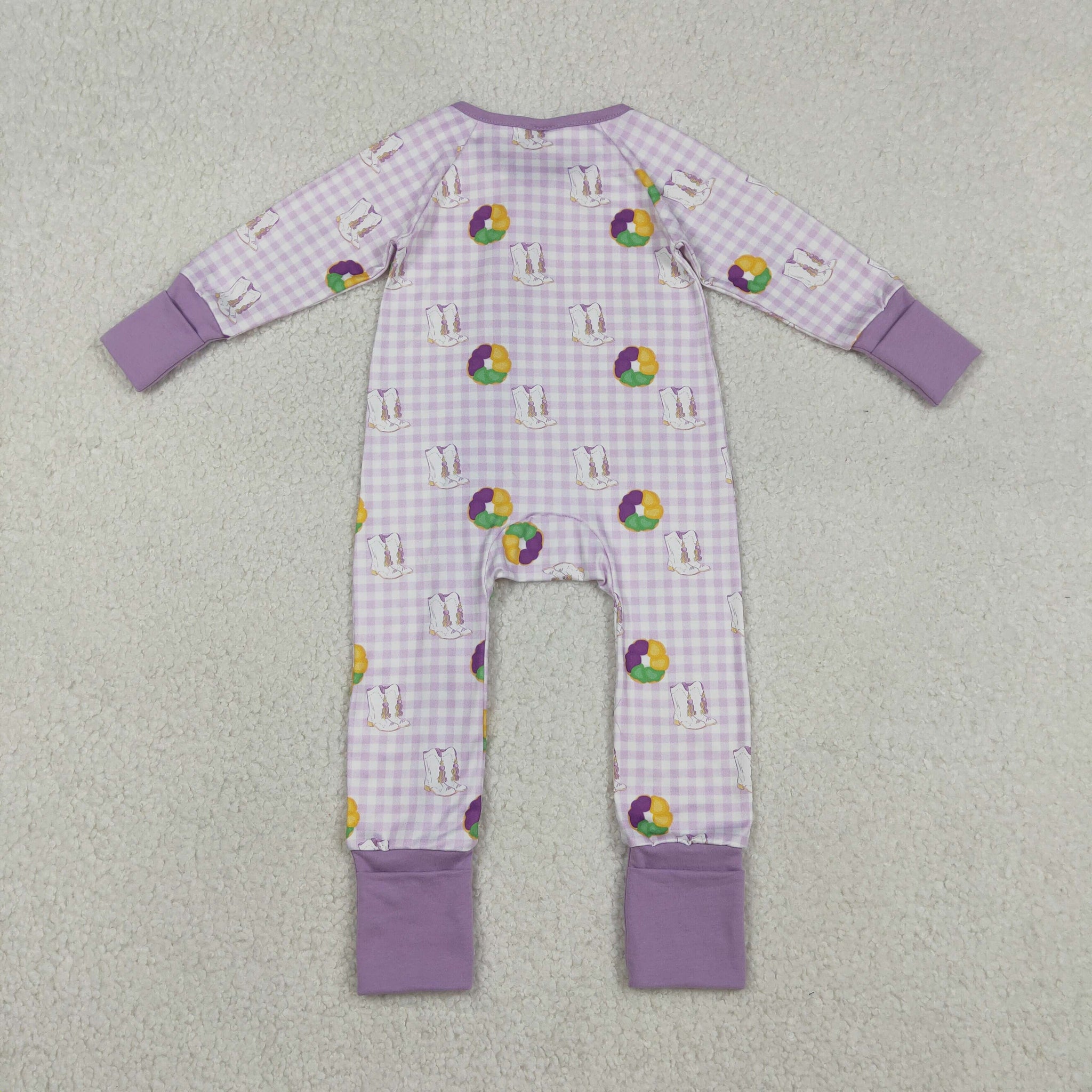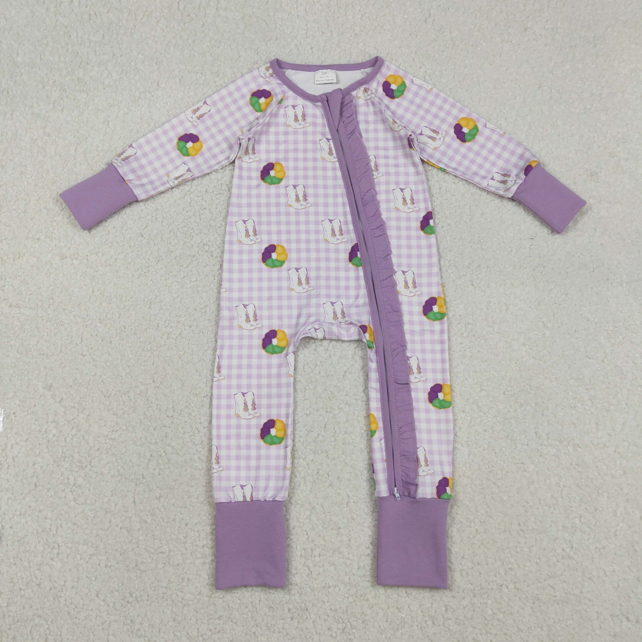 Boots Donut Purple Plaid Girls Mardi Gras Romper