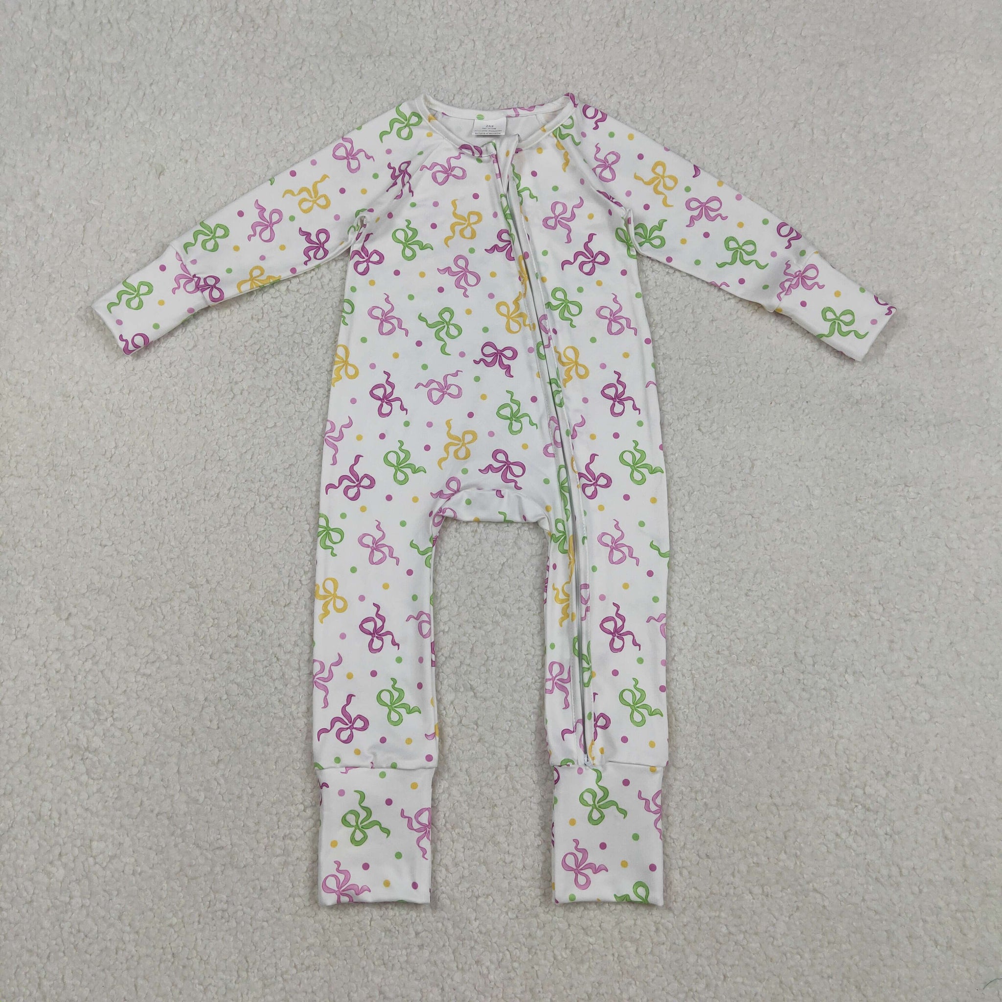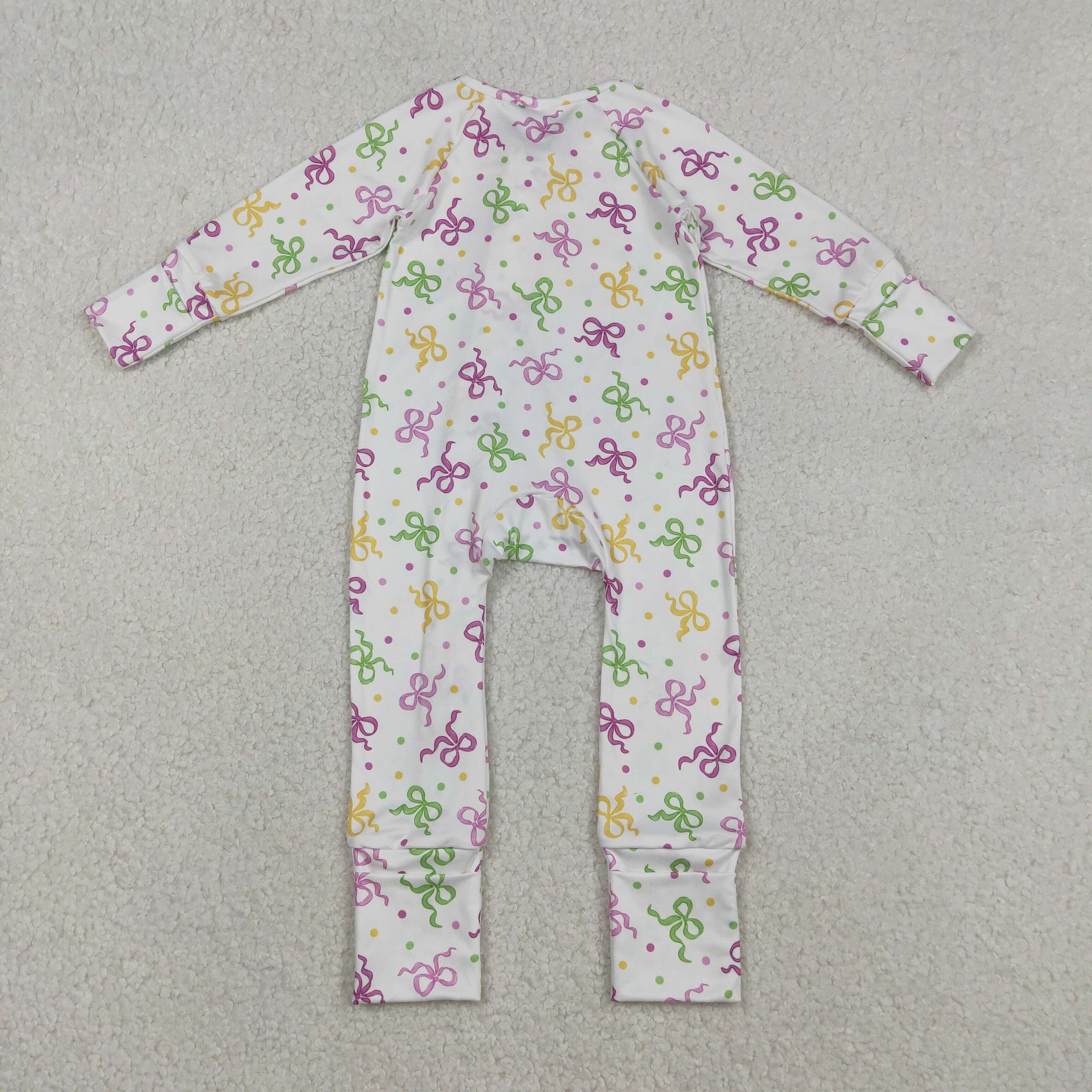 Bow Pattern Polka Dots White Girls Mardi Gras Romper
