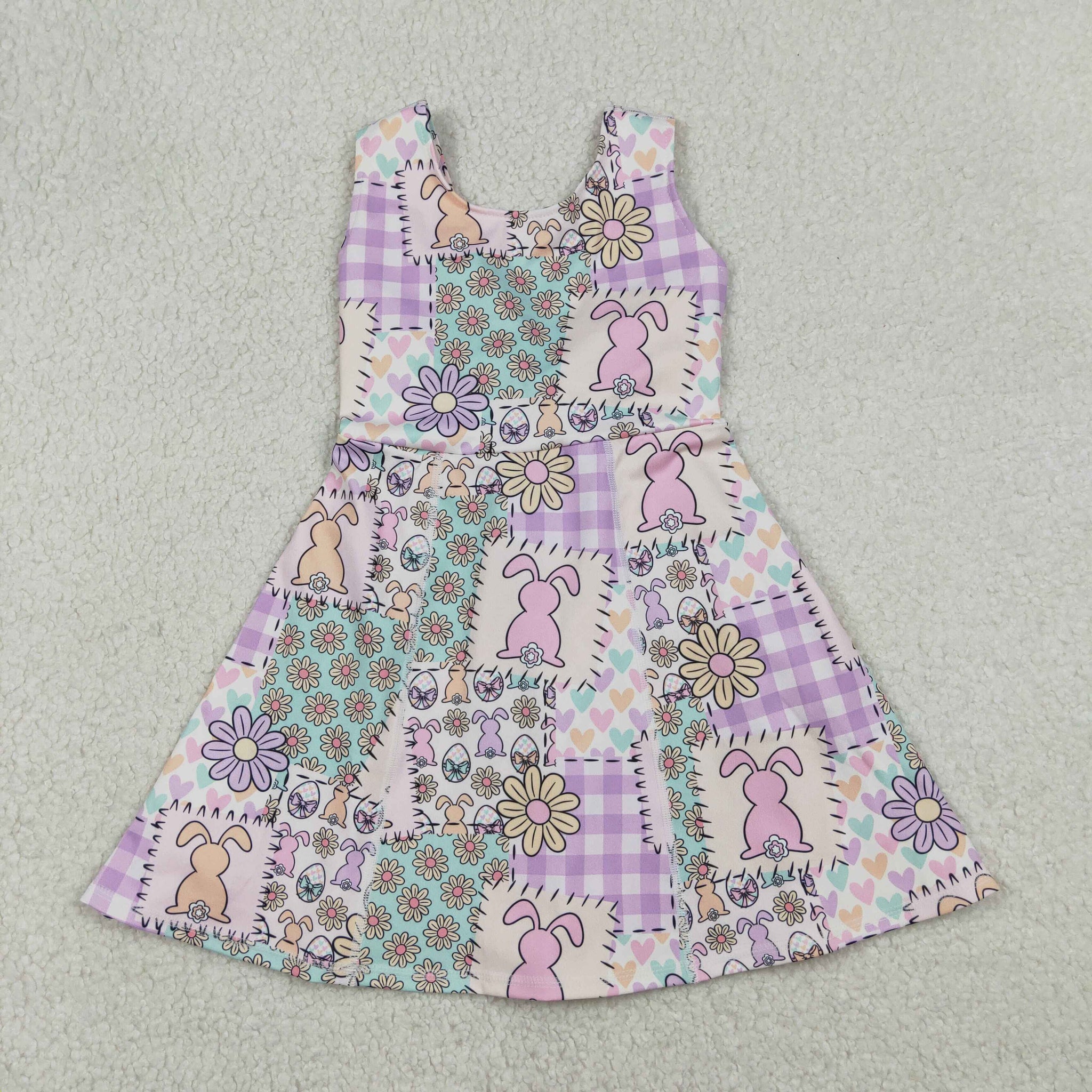 Bunny Floral Purple Plaid Athletic Shorts Girls Mardi Gras Dress