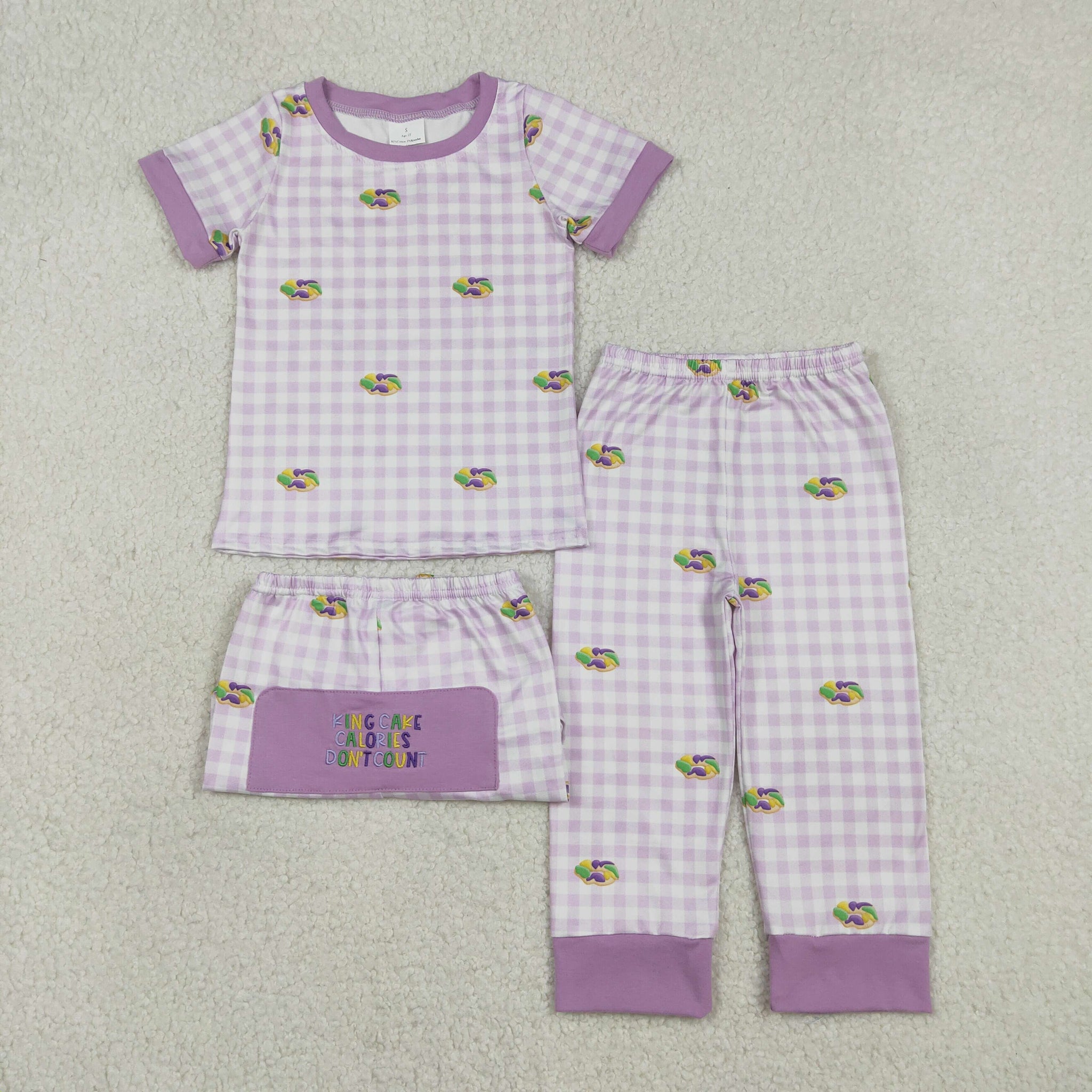 Donut Purple Plaid Girls Mardi Gras Pajamas