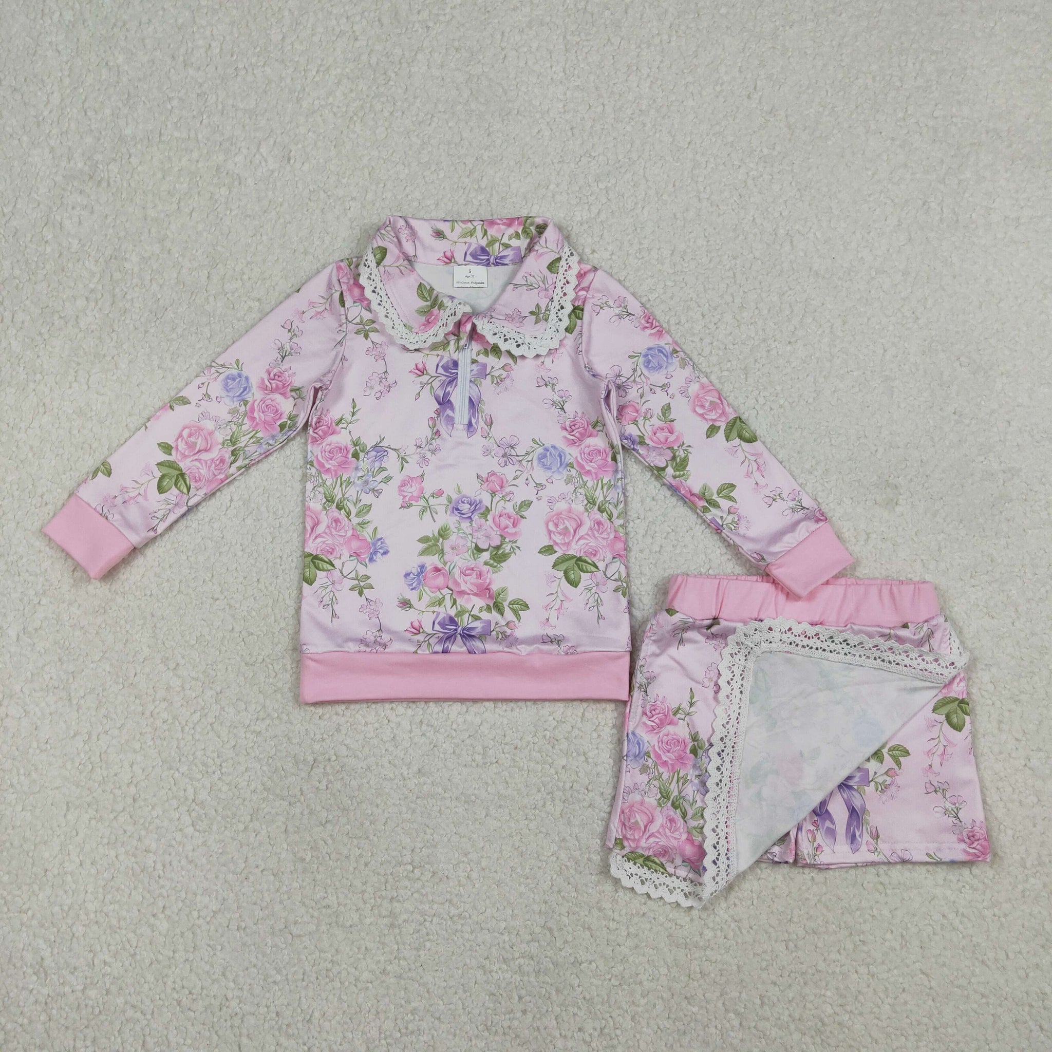 Floral Lace Ruffles Zipper Shorts Girls Skirt Sets