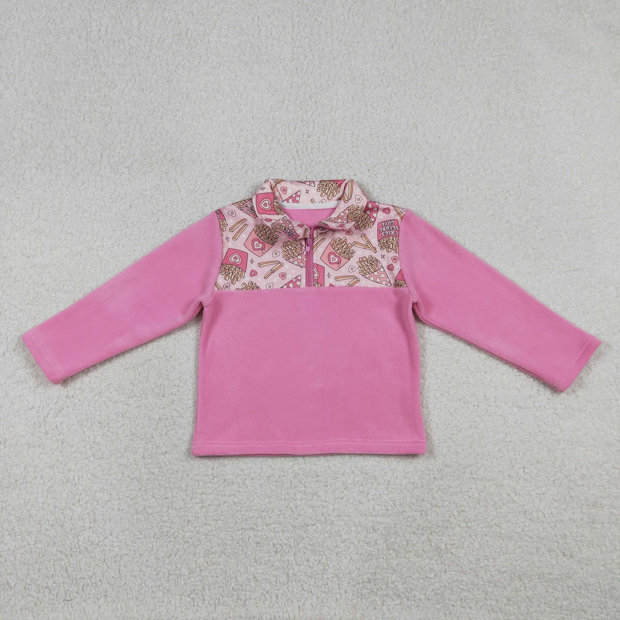 Fries Before Guys Pink Fleece Pullover Plush Coat Girls Valentines Top