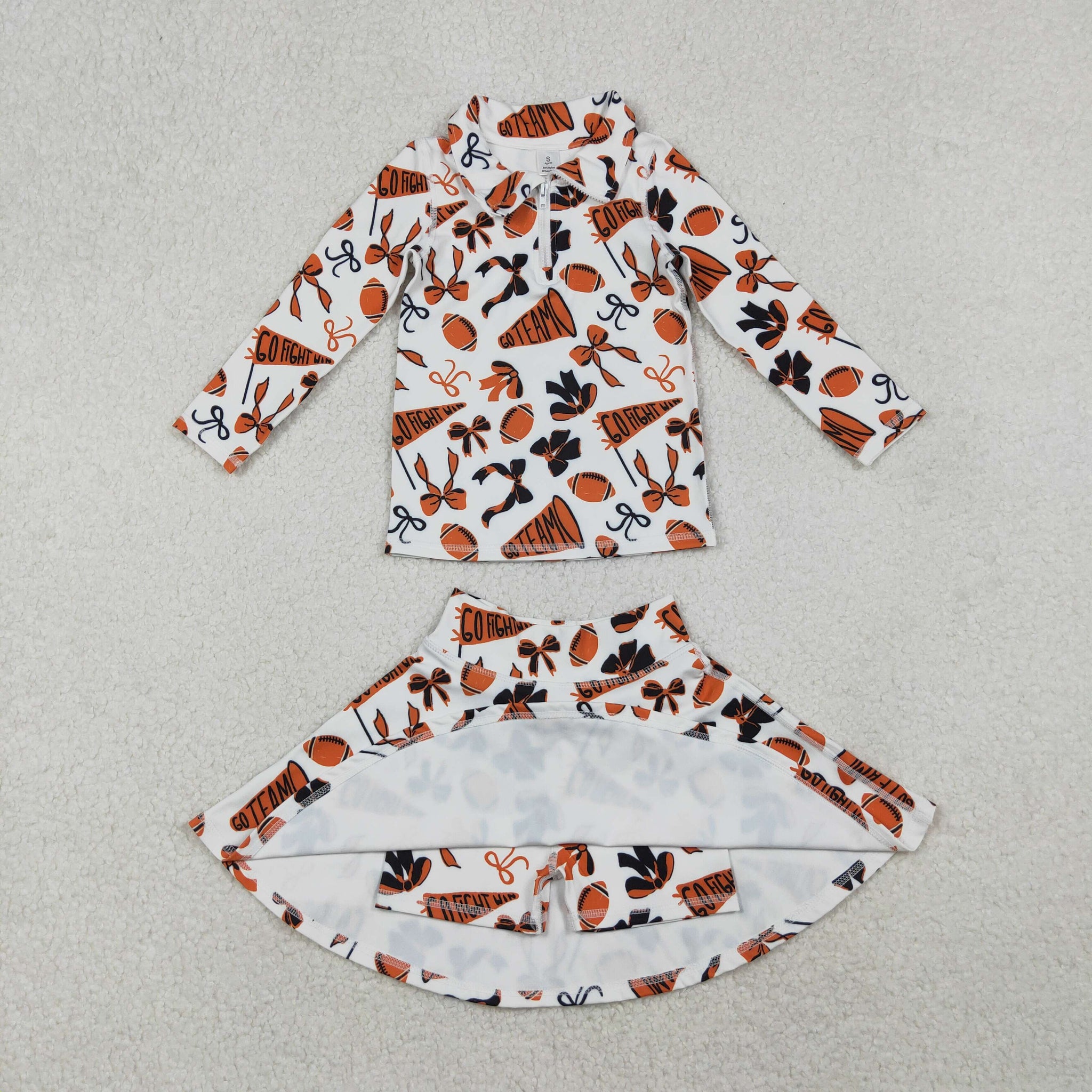 Go Team Football Orange White Athletic Shorts Girls Skirt Sets