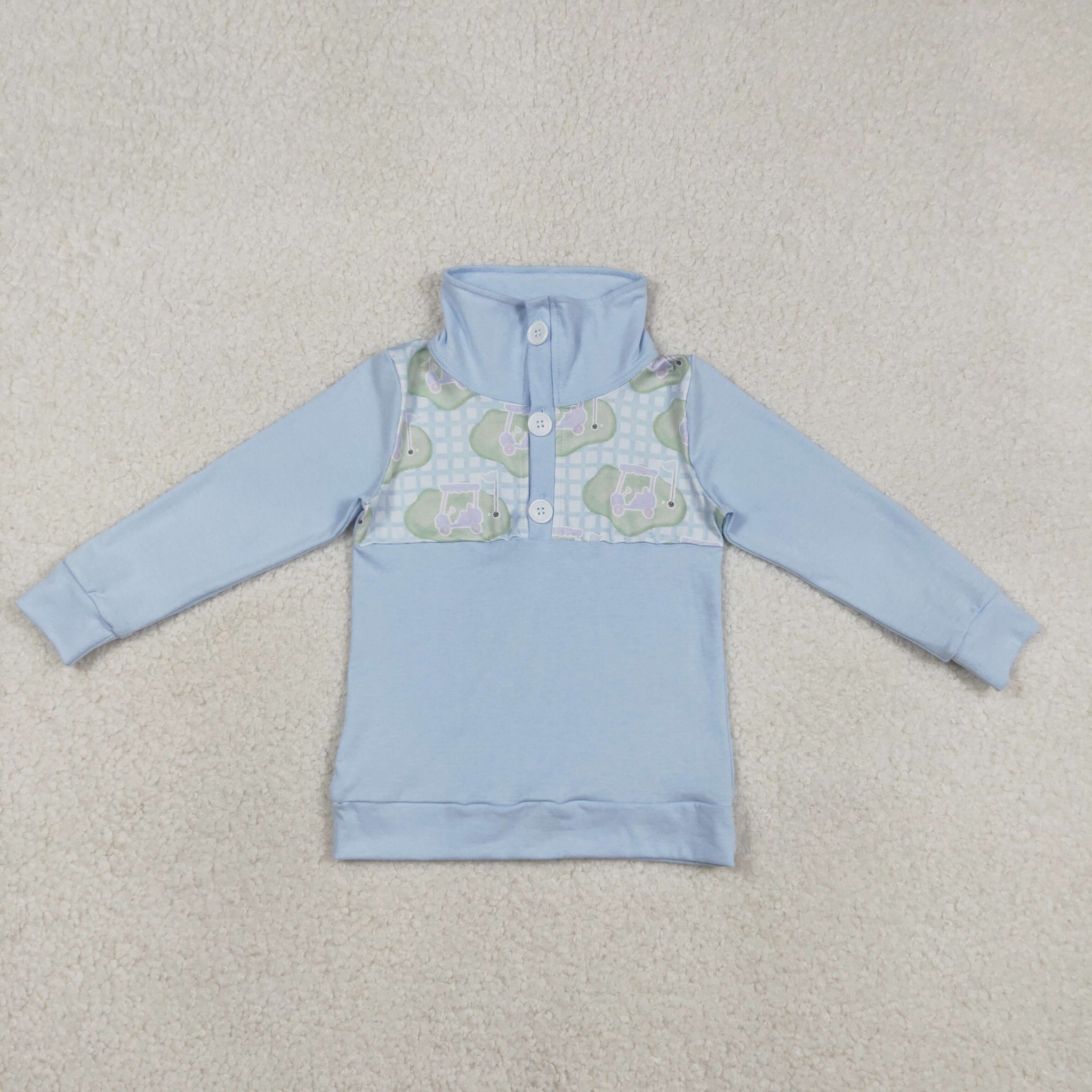 Golf Blue Plaid Polo Boys Long Sleeve Top