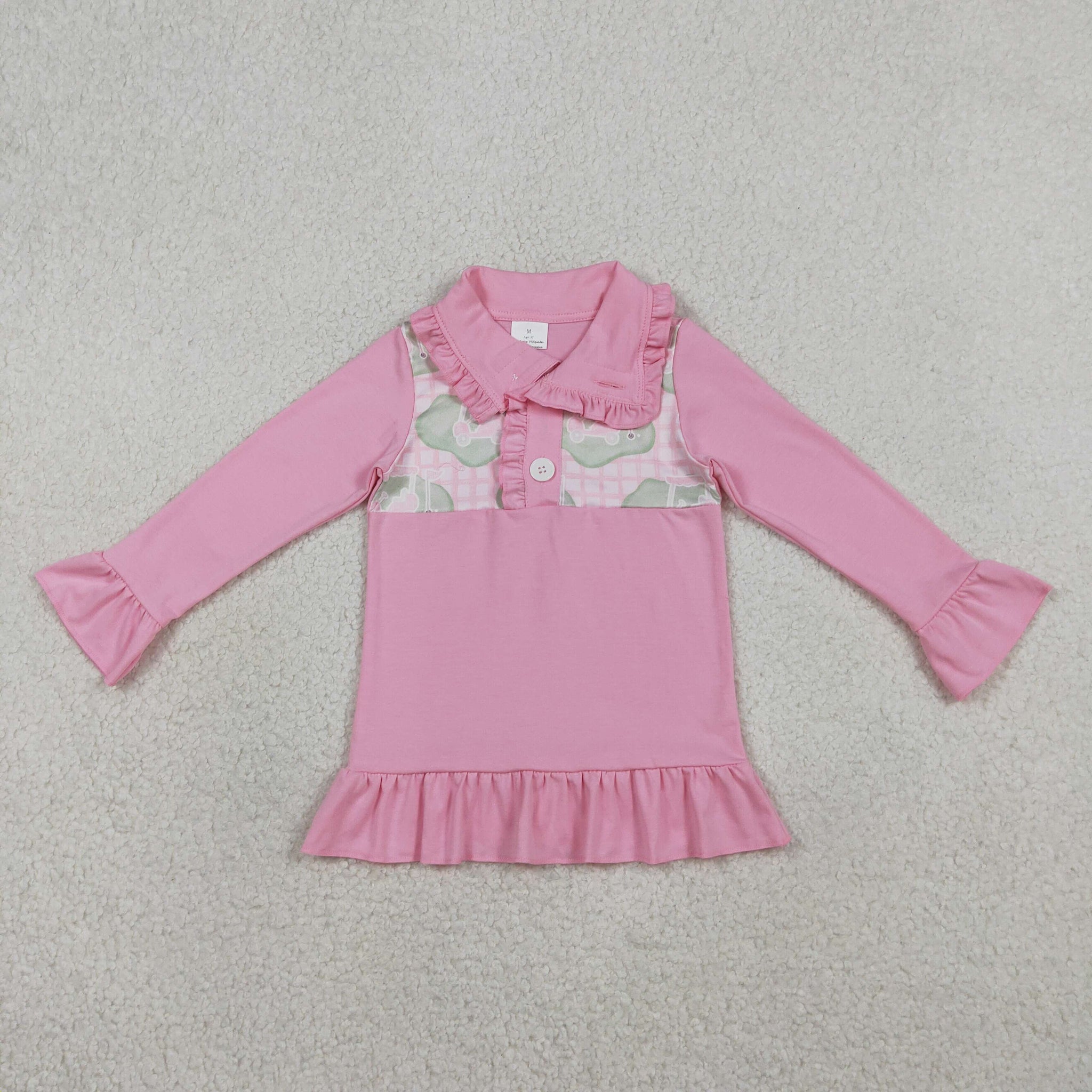 Golf Pink Plaid Polo Girls Long Sleeve Top