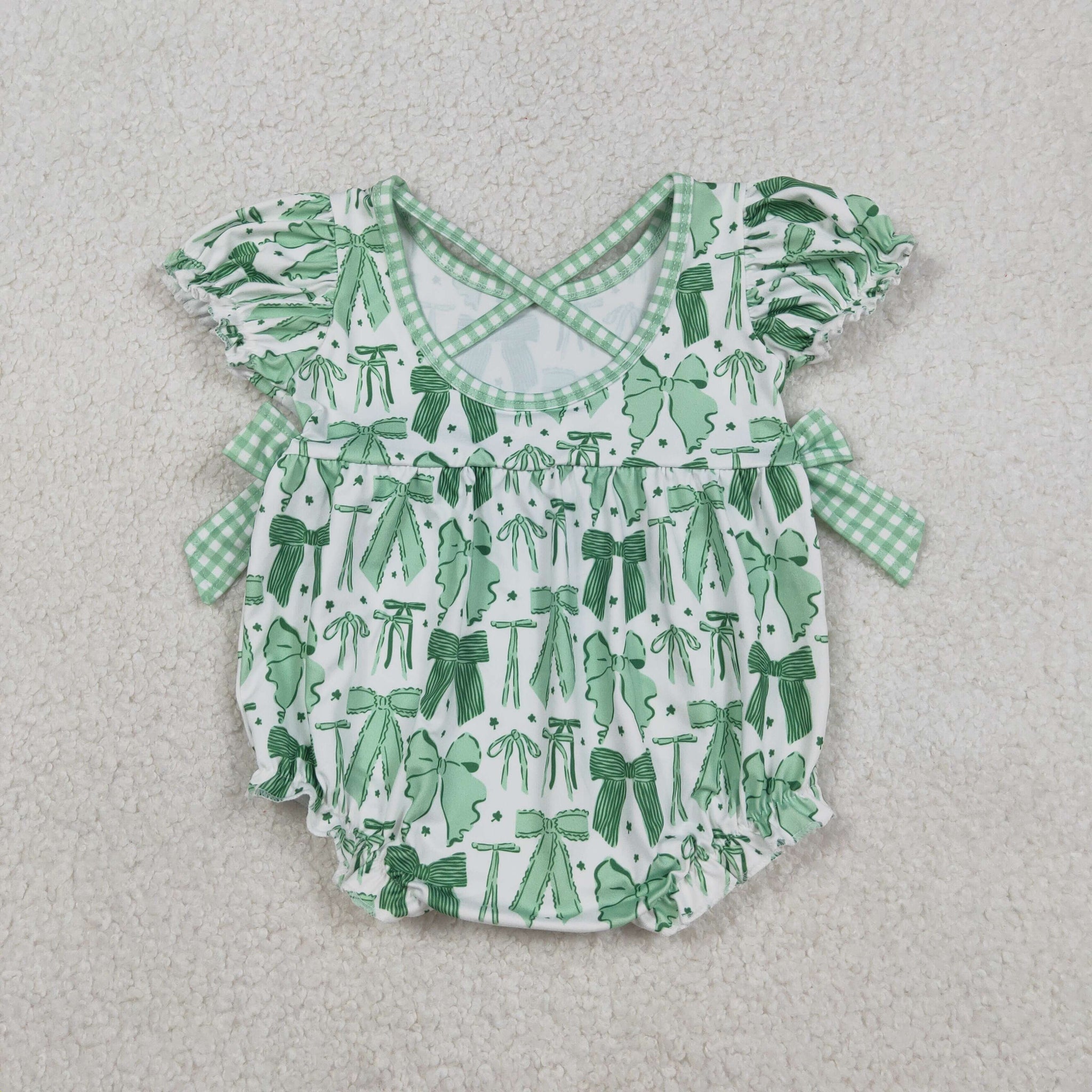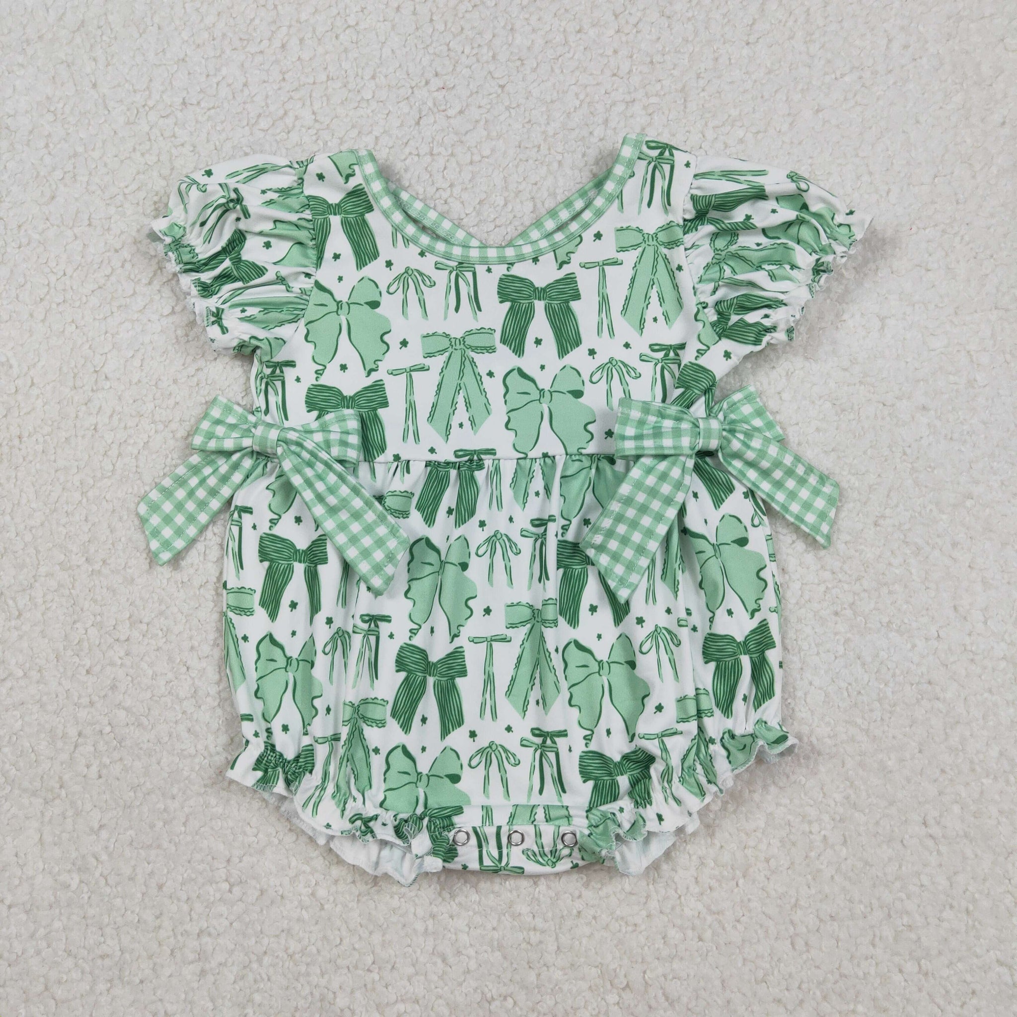 Green Bow Pattern Girls St. Patrick's Day Romper