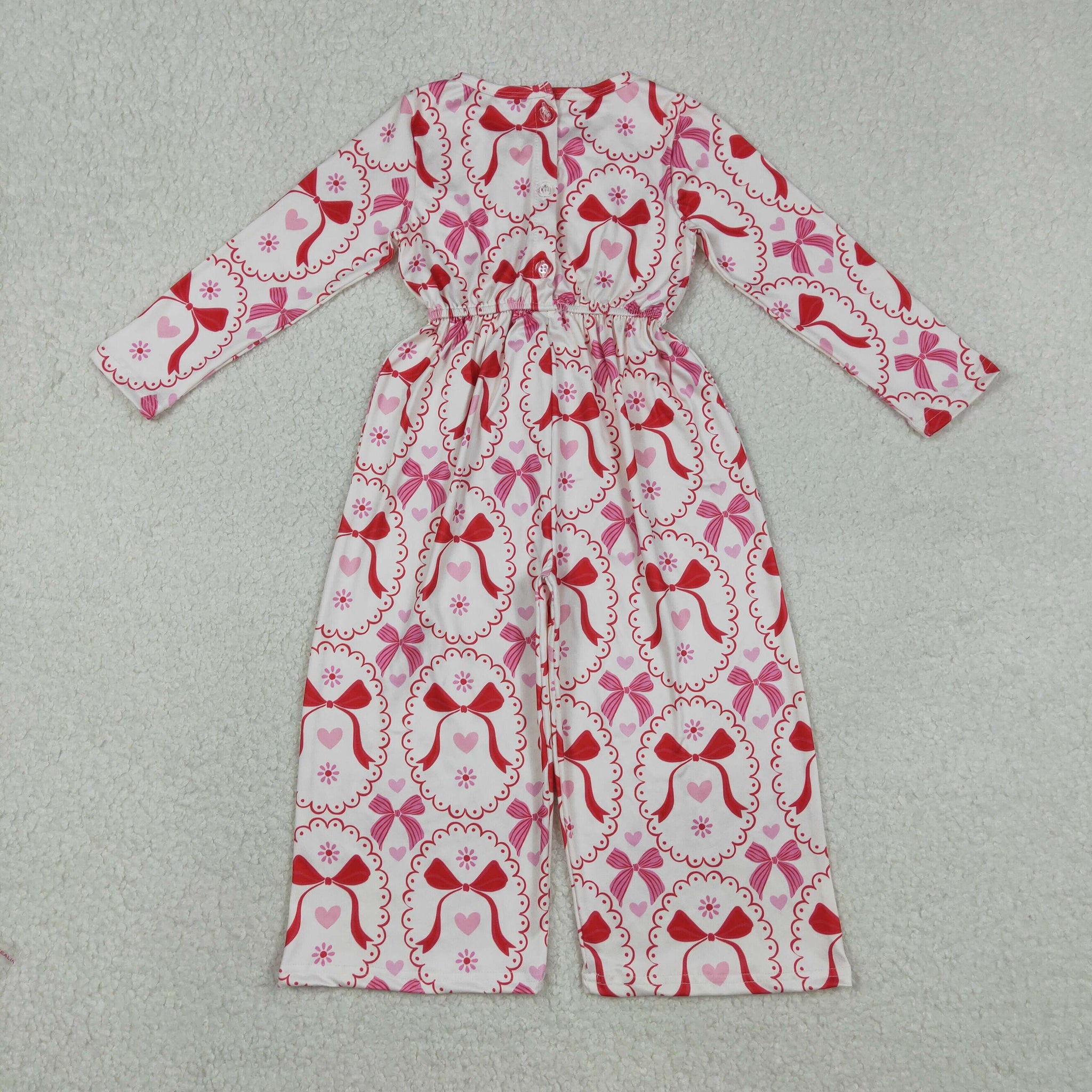 Heart Bow Pattern Girls Valentines Jumpsuit