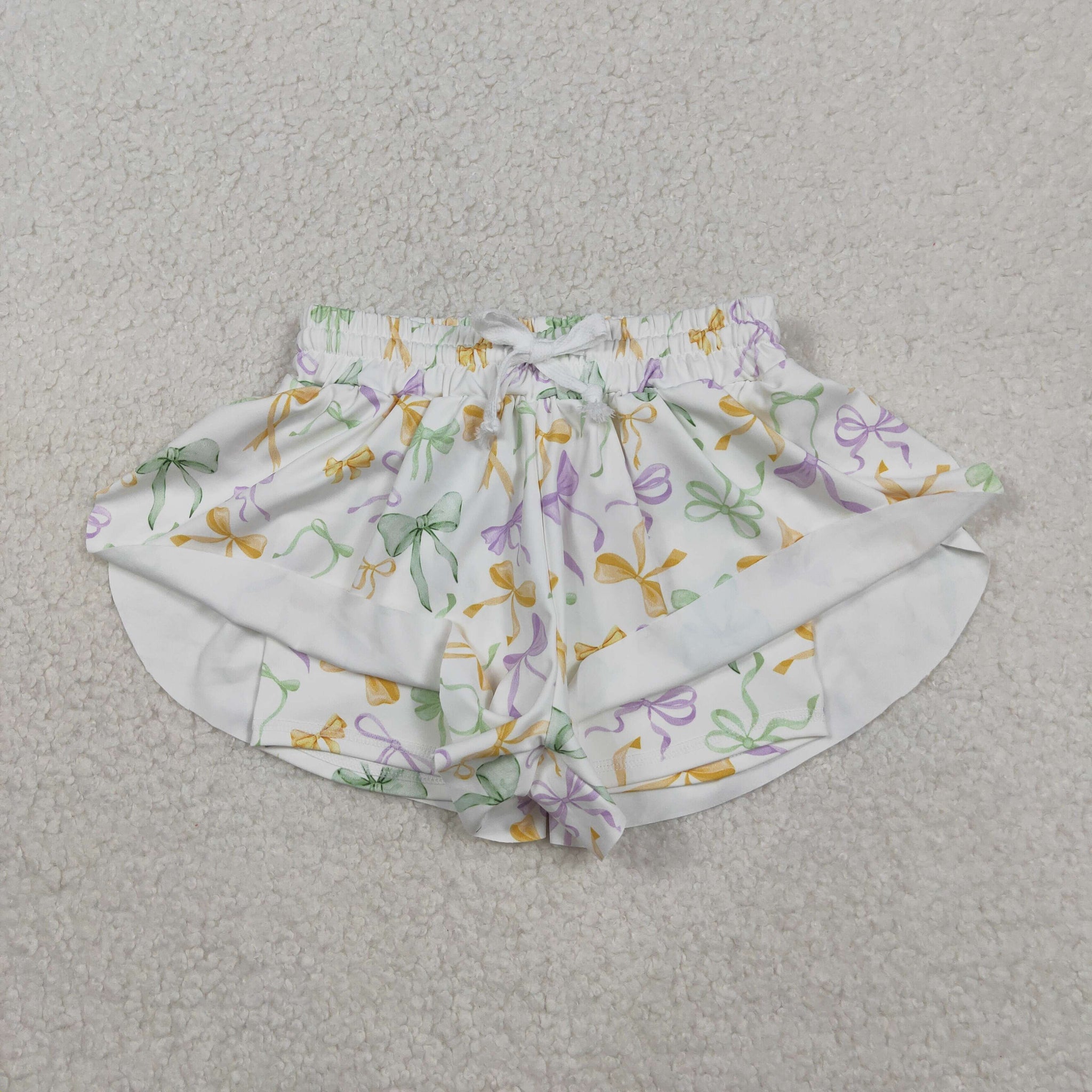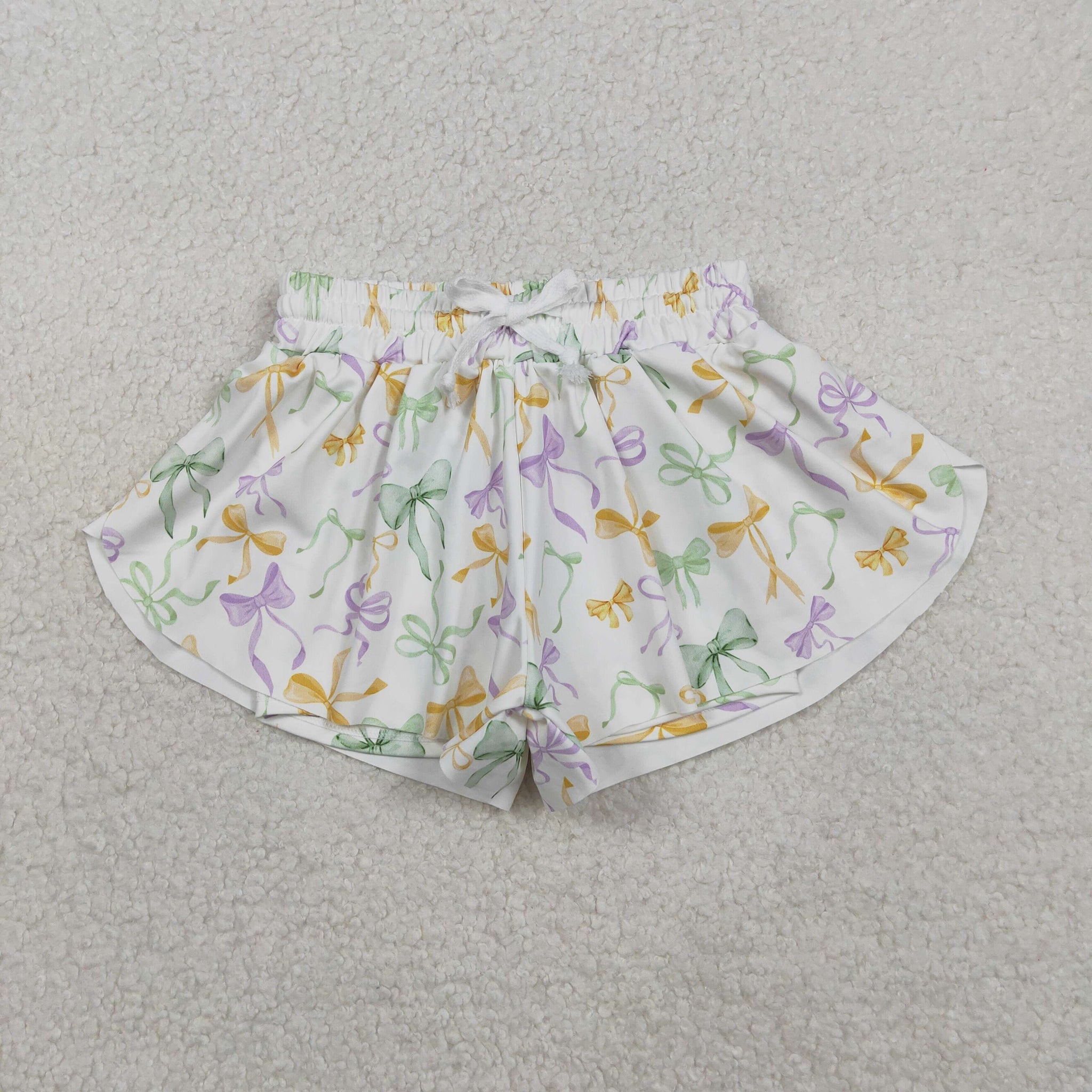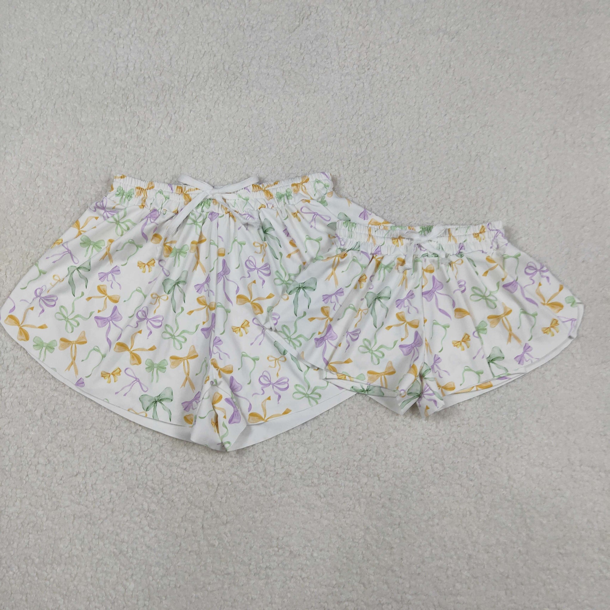Kids Bow Pattern Athletic Girls Mardi Gras Shorts