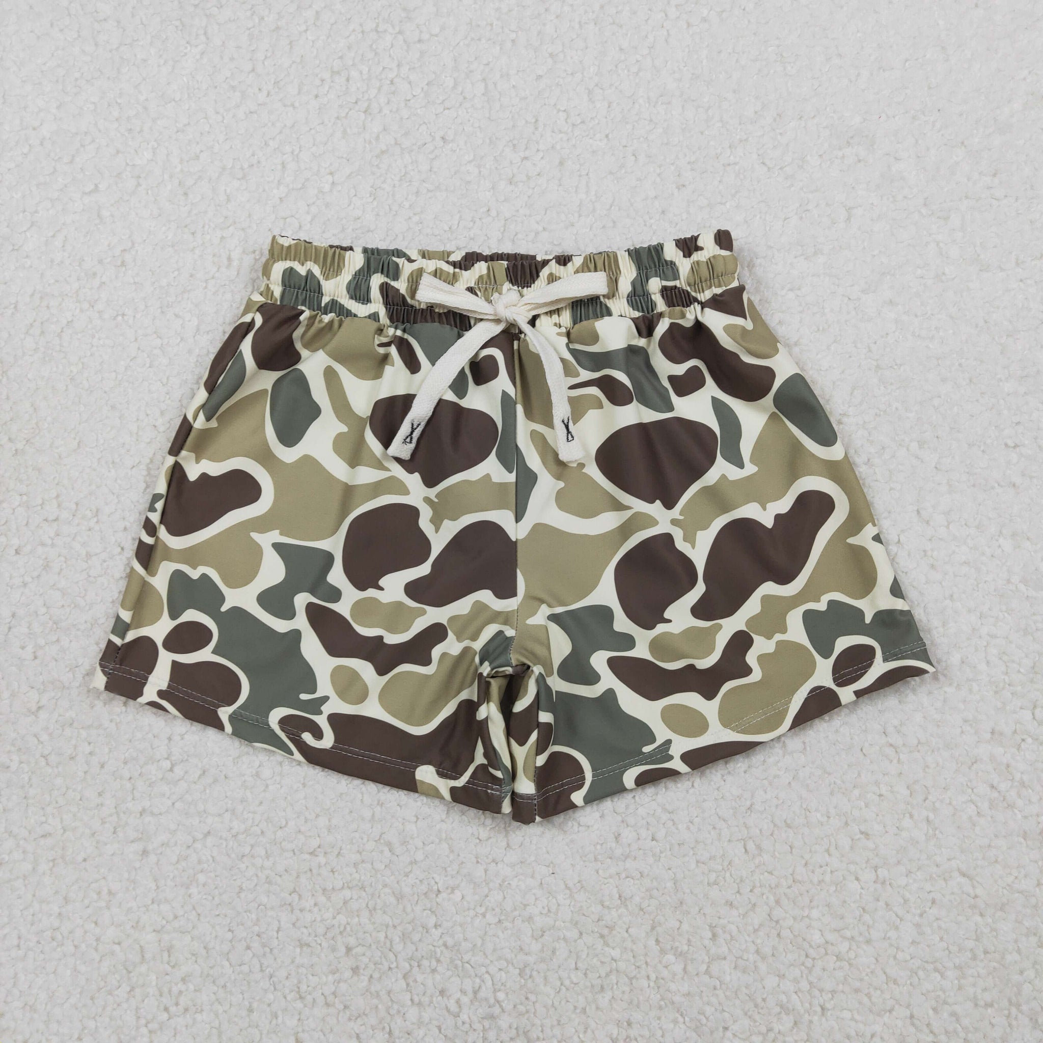 Kids Camo Brown Green Boys Swimming Trunks