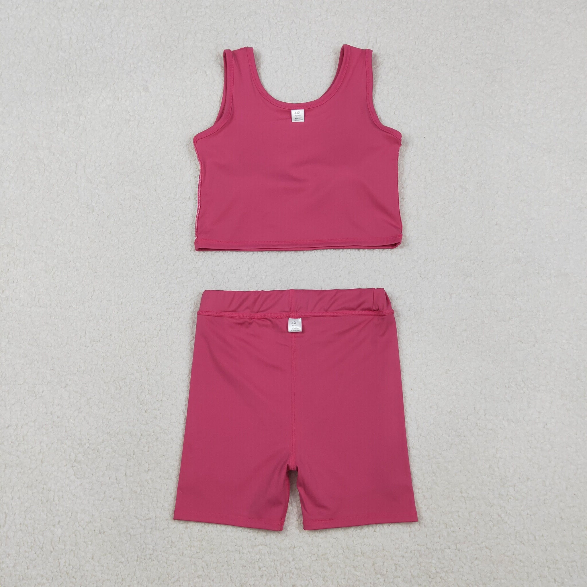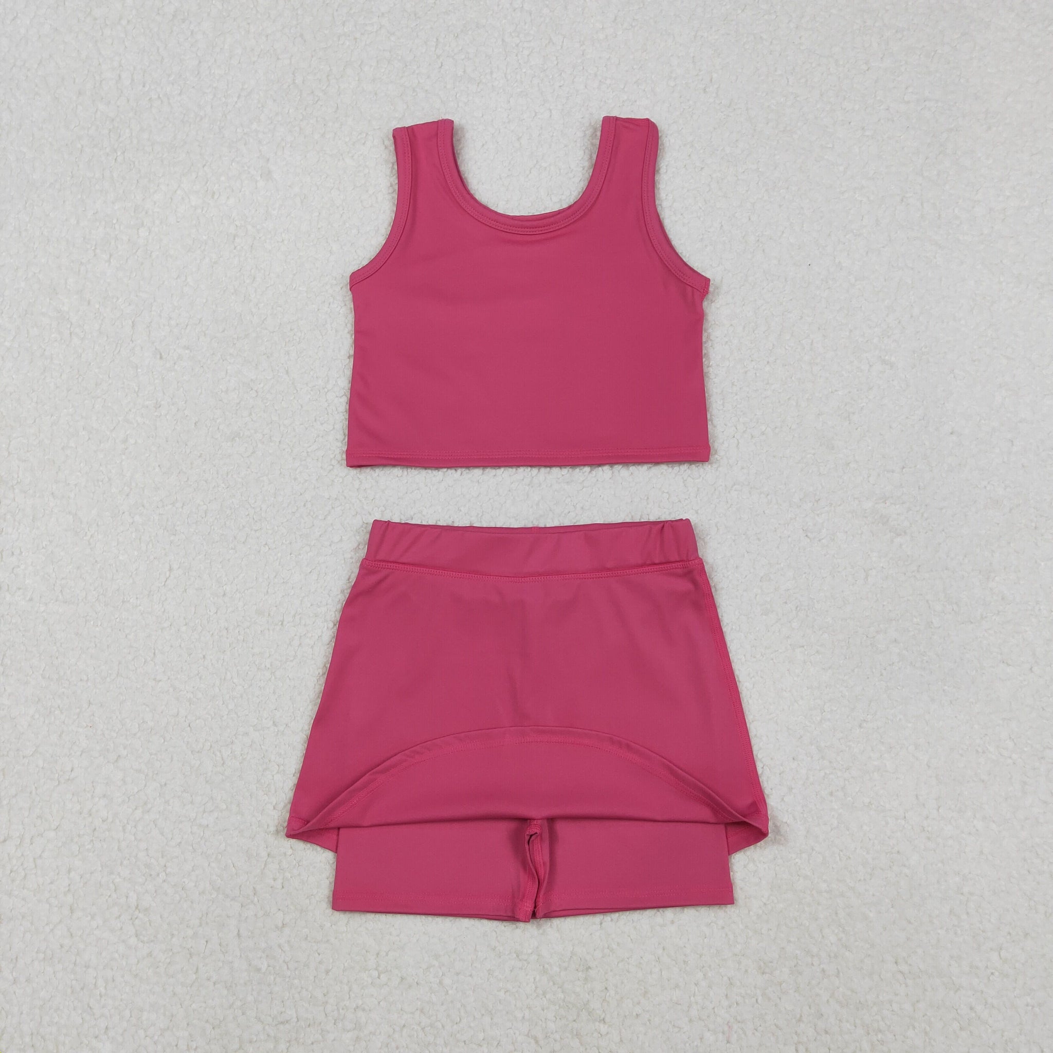 Solid Hot Pink Vest Athletic Shorts Girls Skirt Sets