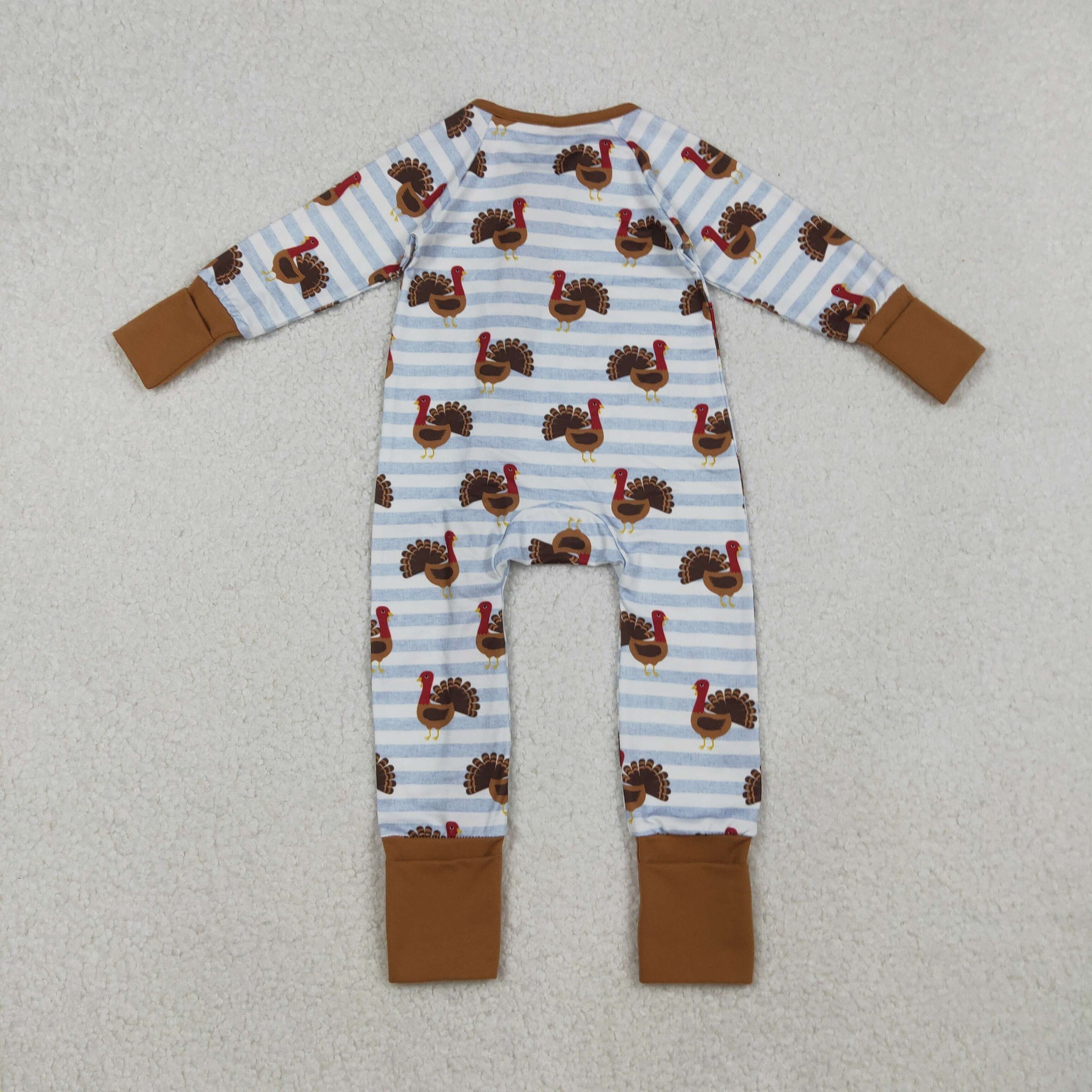 Turkey Blue Stripe Brown Boys Thanksgiving Romper