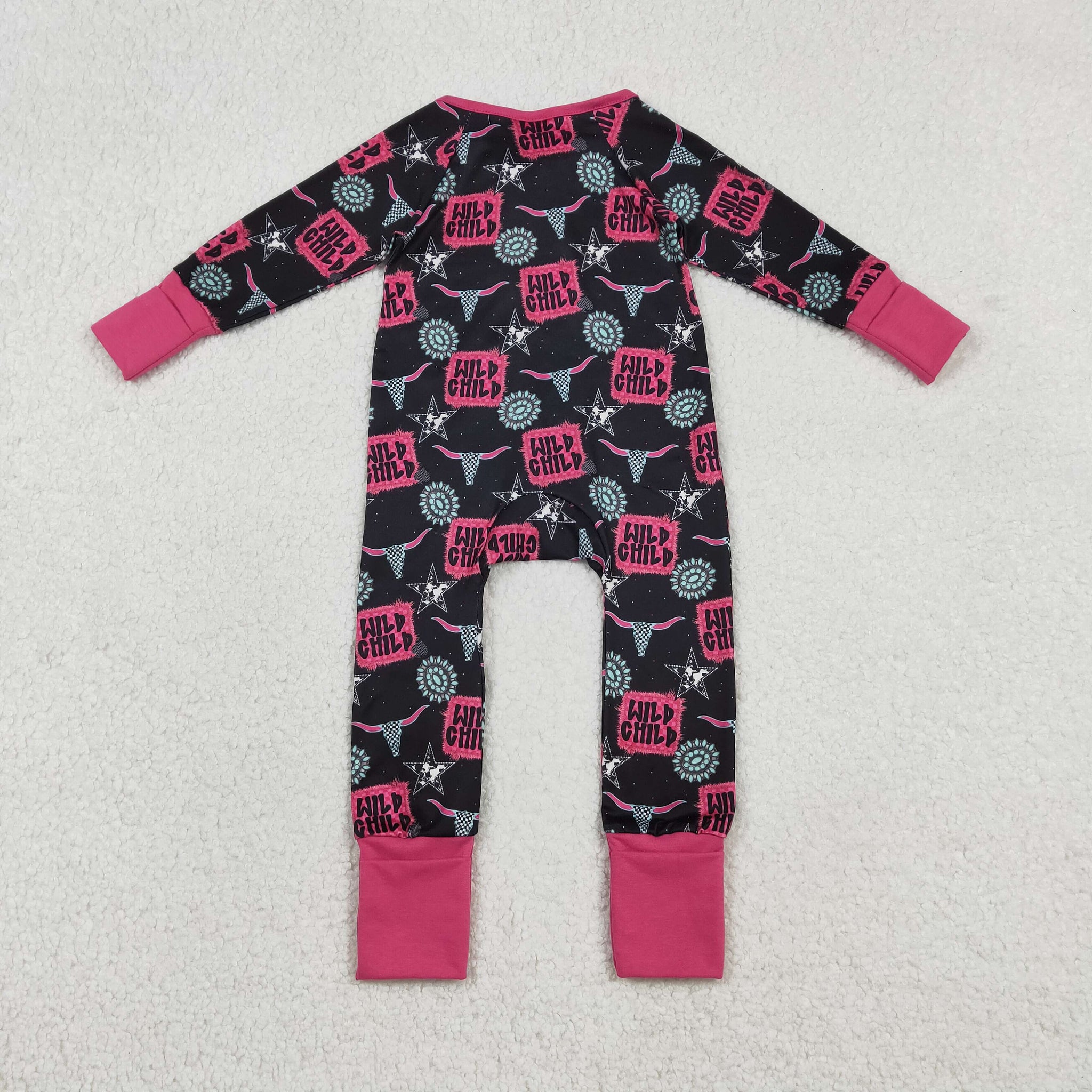 Wild Child Highland Cow Gem Hot Pink Ruffles Girls Fall Romper